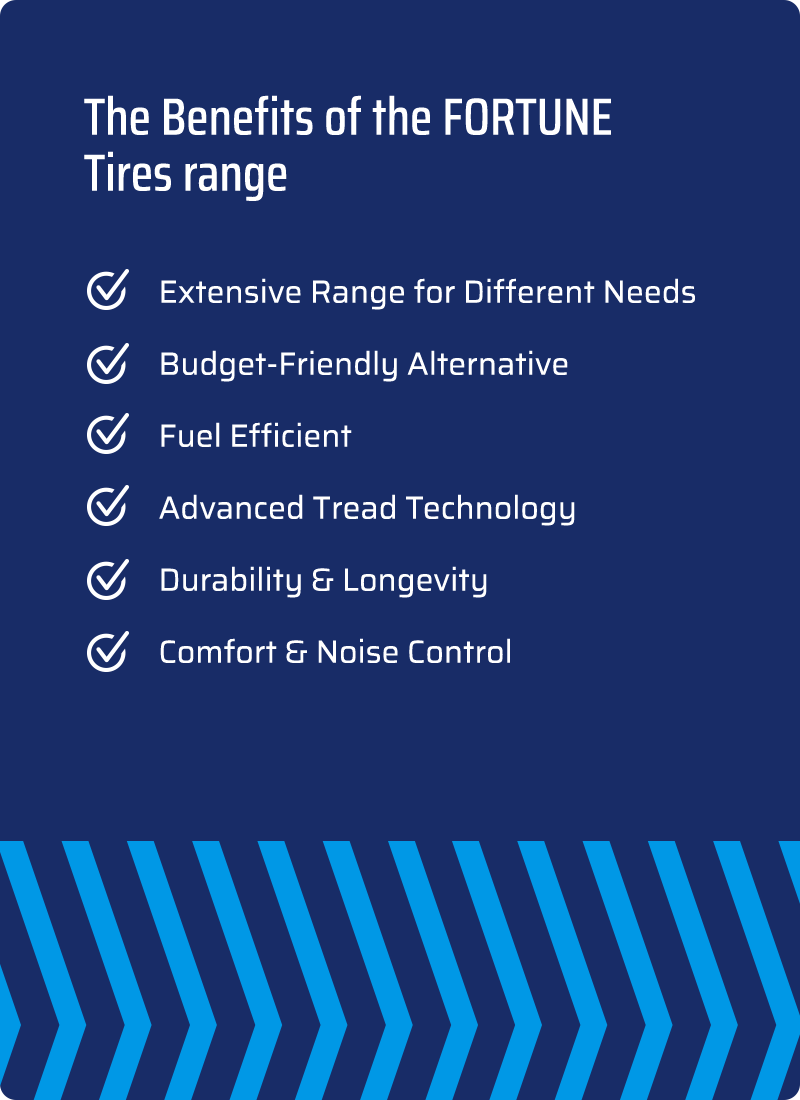 Designed to meet the needs of diverse driving conditions. FORTUNE Tires offer confident grip, responsive handling, and a smooth, quiet ride – whatever the road ahead.